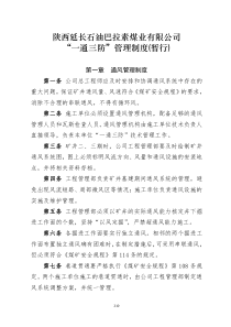 210陕西延长石油巴拉素煤业有限公司“一通三防”管理制度(暂行)第一章通风管理制度第一条第一条公司总工程师应及时安排和协调通风系统中存在的重大问题,保证矿井通风量、风速符合《煤矿安全规程》的要求,消除不合理的串联通风,不得有循环...