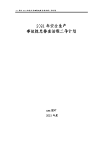 xxxxxx煤矿煤矿20212021年度矿井年度矿井事故隐患排查治理工作计划事故隐患排查治理工作计划20212021年安全生产年安全生产事故隐患排查治理工作计划事故隐患排查治理工作计划xxxxxx煤矿煤矿20212021年度年度xxxxxx煤矿煤矿20212021年度...